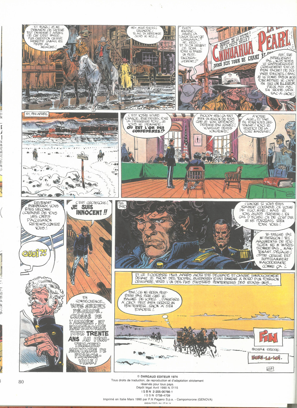 Suite de la suite du début des ennuis de Blueberry. Tour à tour le bon, la brute et le truand pour quelques (500 000) dollars de plus et certaines illusions sur l’armée américaine en moins. Le voilà qui va en prendre pour 7 albums et pour son grade et le droit de douter de son prochain.