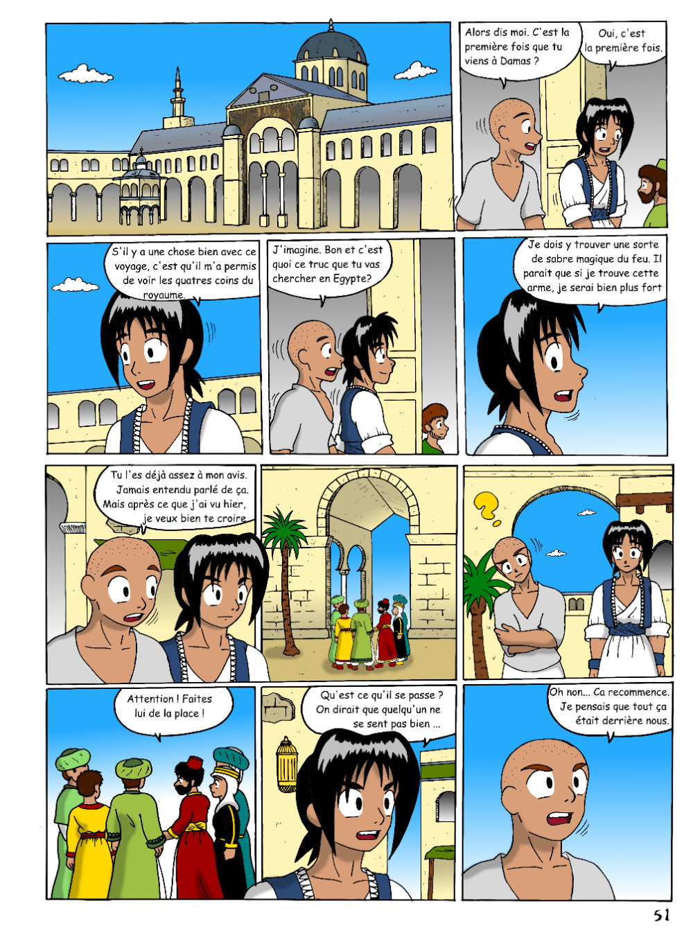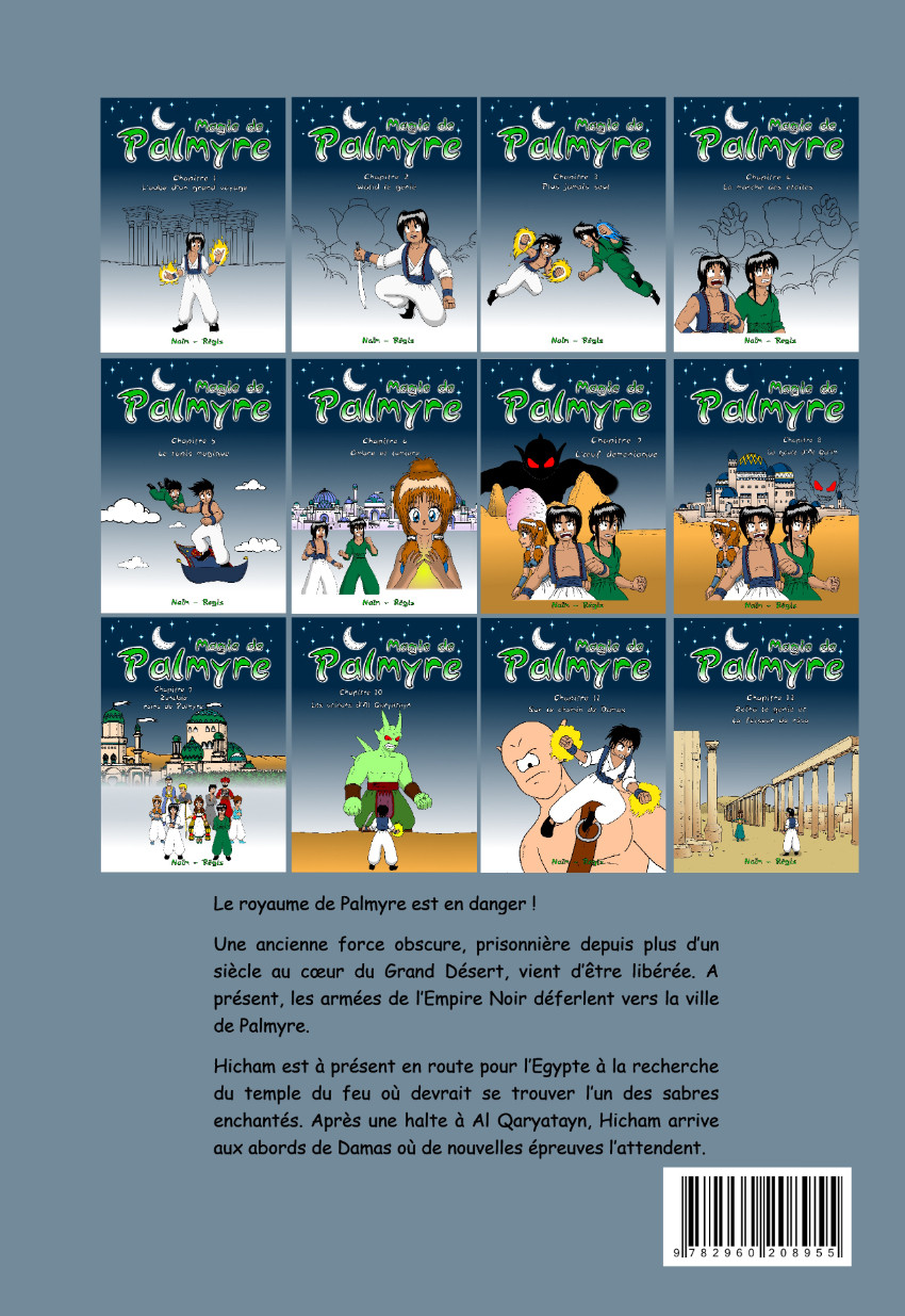Après un long voyage depuis les confins du royaume, Hicham, Ifrah et Nadia arrivent enfin à Palmyre. Ils rencontrent la reine Zénobie ainsi que l’ensemble des autres magiciens ayant hérité des pouvoirs magiques de Palmyre. Le repos n’est que de courte durée, puisqu’ils doivent se mettre en quête des sabres enchantés, forgés autrefois dans le métal de la lampe mystérieuse, source de la magie de Palmyre. Les archives de la bibliothèque royale indiquent la localisation de temples à travers le royaume où ces sabres magiques sont cachés depuis la dernière... Lire la suite