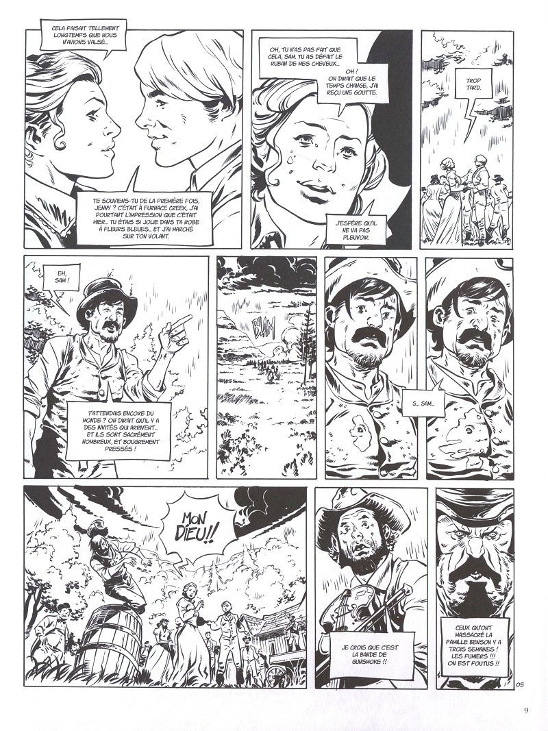 De l'action il y en a finalement peu dans Texas Jack qui reste plus une buddy story très intelligemment scénarisée et moins sombre et violent que Sykes. Démarrant dans le bruit et la fureur d'un méchant terriblement charismatique et abominable, l'on se surprend à attendre tout l'album la ou les confrontation(s)... De la même manière que Sykes est discret, Gunsmoke est absent pour que l'attention se concentre sur ce bellâtre de Texas Jack et ses amis pas si branquignoles qu'il n'y paraît. Le groupe apporte tantôt sensualité, tantôt humour et complicité en vivant sur les planches de l'album. Le lecteur est tenu en haleine de promesses qui tardent à venir, surpris tout le long d'avoir ce qu'il n'attend pas. Du coup la conclusion est un poil rapide et décevante mais se prolonge heureusement sur une sorte d'épilogue qui, encore une fois confirme où se situe le cœur de ce récit, celui du héros éponyme au cœur brisé.