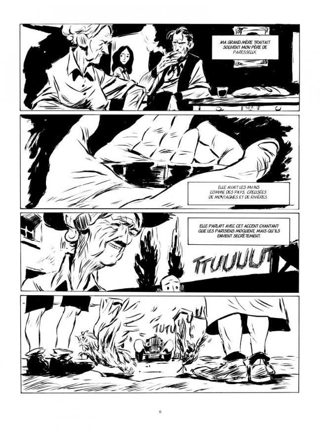 Augustin, enfant solitaire et mutique d’à peine 13 ans, vient de perdre sa grand-mère Geneviève, seule personne de la famille, sans doute, qu’il aimait sans réserve. La vieille dame est morte aujourd’hui, des suites d’une chute accidentelle dans l’escalier de granit qui mène au premier étage. Enfin ça, c’est la version officielle. Celle qu’ont propagée tout de suite les autres membres de la maisonnée – son père Maurice, ce jean-foutre, sa mère Lucette, si peu sûre d’elle-même – et qu’ont prise pour argent comptant, quoique avec une certaine réticence, les gendarmes venus constater le décès. Parce qu’en réalité, avec cette histoire de dette que traînait Maurice, et avec la bastide et les vignes qu’on aurait pu vendre illico, n’était l’opposition farouche de feu Geneviève… Remarqués avec Achevé d’imprimer, leur précédent titre en forme de cavale sanglante, Mabesoone et Mau reprennent du service avec ce nouvel album coup de poing, toujours aux couleurs farouches du roman noir. Lâcheté, bassesses, violence radicale ; n’espérez pas vous en sortir, il n’y a aucune issue.