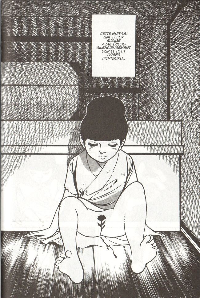 O-Tsuru (« la grue »), appelée ainsi parce que petite elle avait l’habitude de se tenir sur un pied pour réchauffer l’autre, a été vendue par ses parents pour qu’elle devienne une geisha. Elle va donc commencer comme shikomikka (« apprentie ») dans une okiya : la maison où vivent les geishas. En faisant les commissions de ses aînées, Tsuru va découvrir la vie de ses femmes. Enfin, un jour, son tour arrive. Elle se rend dans la chambre de son bienfaiteur. Celui qui, en payant les frais de cérémonie, va la faire entrer dans le monde des geishas. Tsuru va alors prendre le nom de Tsurugiku et devenir une geisha célèbre dans le monde des plaisirs.