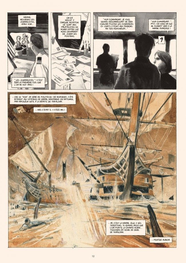 Pour la mer — afin de la comprendre et de savoir la dessiner —, pour les Terres australes — qui sont comme la promesse d’un temps qui n’est plus —, en mars et avril 2010, pendant plusieurs semaines, Emmanuel Lepage a embarqué sur le Marion Dufresne, au départ de Saint-Denis de La Réunion, pour faire le voyage dans les T. A. A. F., les Terres Australes et Antarctiques Françaises.