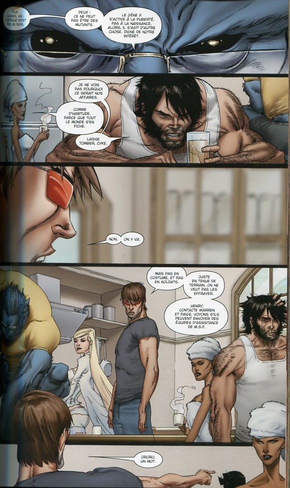 Cette saga récente des X-Men collectionne les bons points : c'est une histoire complète, indépendante et relativement détachée de la continuité ; elle est signée par Warren Ellis, l'excellent auteur de Planetary et Transmetropolitan, et dessinée par le talentueux et trop rare Kaare Andrews. Enfin, c’est tout simplement une histoire passionnante dans laquelle les Astonishing X-Men partent en Afrique enquêter sur d'étranges naissances d'enfants aux incroyables pouvoirs... La malédiction d'House of M, qui empêchait les naissances mutantes, aurait-elle pris fin ? © Panini Comics.