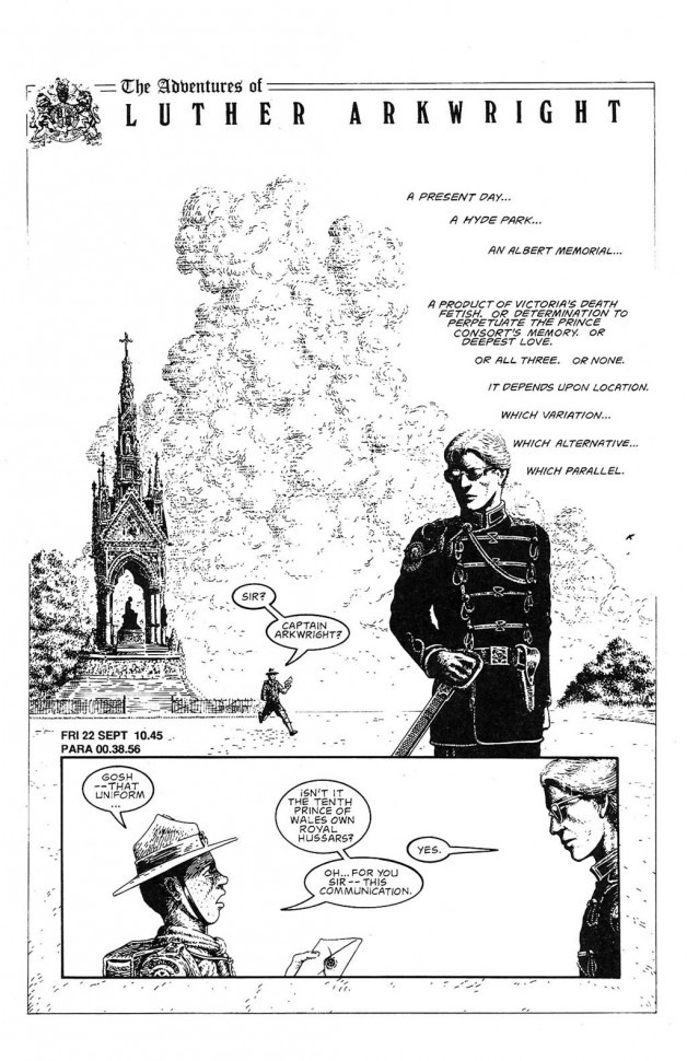 Luther Arkwright is a work of apocalyptic science fiction set in parallel universes. The eponymous hero has the unique talent of being able to move between parallels purely by force of will, and is aided by Rose Wylde, a telepath whose many incarnations across the parallels are able to communicate with one another. Luther and Rose are agents of a parallel known as "zero-zero", whose stable position in the multiverse has allowed the development of a world at peace with itself and sufficiently high technology to monitor the parallels for signs of the malign influence of the "Disruptors".