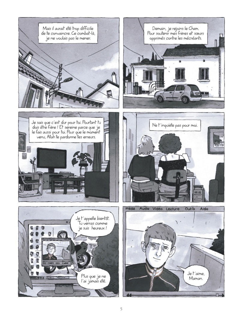 Fiction d'un réalisme social saisissant, L'Appel est à la fois un roman graphique sur la radicalisation des jeunes, et un récit sur l'incompréhension : celle d'une mère face aux choix de son fils, qui fait écho à celle de notre société face à ce phénomène qui la frappe en son coeur.