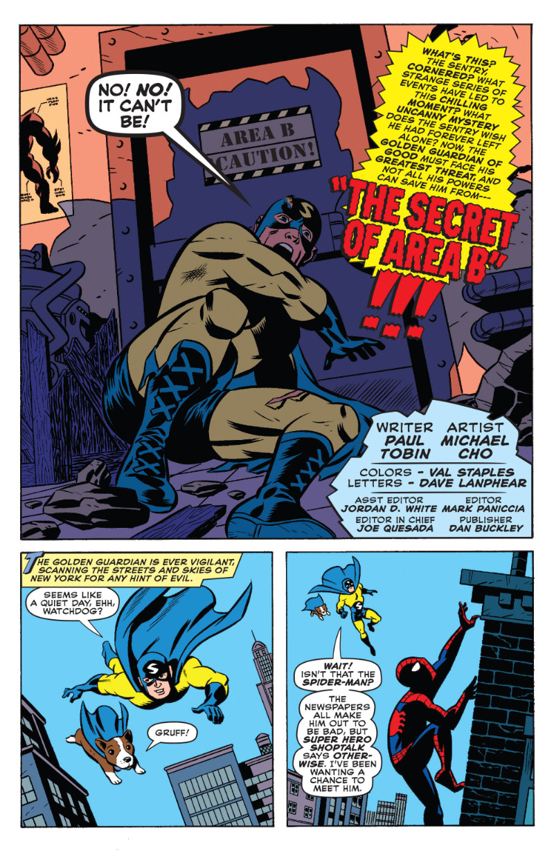 The Sentry (Robert "Bob" Reynolds) est un super-héros de fiction figurant dans des bandes dessinées américaines publiées par Marvel Comics. Le personnage apparaît pour la première fois dans The Sentry # 1 (septembre 2000) et a été créé par Paul Jenkins et Jae Lee avec des contributions conceptuelles non créditées de Rick Veitch.