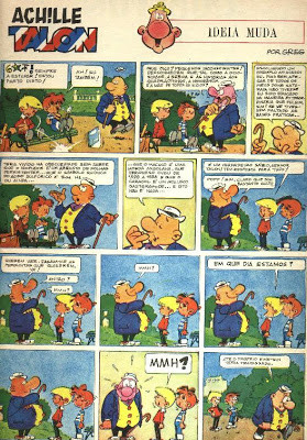 Achille Talon, estereótipo do quarentão da classe média francesa, tem um pequeno mundo à sua medida, uma pequena vivenda numa zona residencial, um vizinho agressivo, Lefuneste, uma noiva de origem nobre, Virgule de Guillemet, um pai apreciador de cerveja e uma boa mãe que lhe faz umas boas refeições.