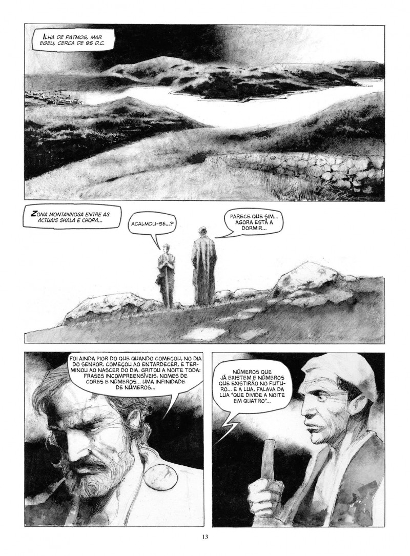 O Apocalipse, ou Livro das Revelações, é o último e o mais visionário livro do Novo Testamento. Atribuído ao evangelista São João, este capítulo fulcral da Bíblia é adaptado à banda desenhada de forma simultaneamente rigorosa e inovadora por dois mestres dos fumetti italianos, Alfredo Castelli e Corrado Roi, não só traduzindo em imagem o texto alegórico de São João, como analisando a importância deste texto bíblico ao longo dos tempos, através da influência que o Apocalipse teve sobre personalidades tão diversas como Isaac Newton, Aleister Crowley e Jorge Luís Borges.