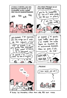 Cette BD est un recueil d’une grande majorité des anecdotes de mon quotidien depuis les travaux pratiques de chimie au collège jusqu’à mon Master en Media Design aujourd’hui. J’ai retravaillé les dessins trop anciens, raconté mon premier festival de BD, mes premières dédicaces, mes coups de cœur en jeux vidéo et surtout, je sais que vous mourez d’envie de connaître les moindres détails de ces journées exceptionnelles et pleines de suspense où j’ai par exemple été malade ou même loupé un train.