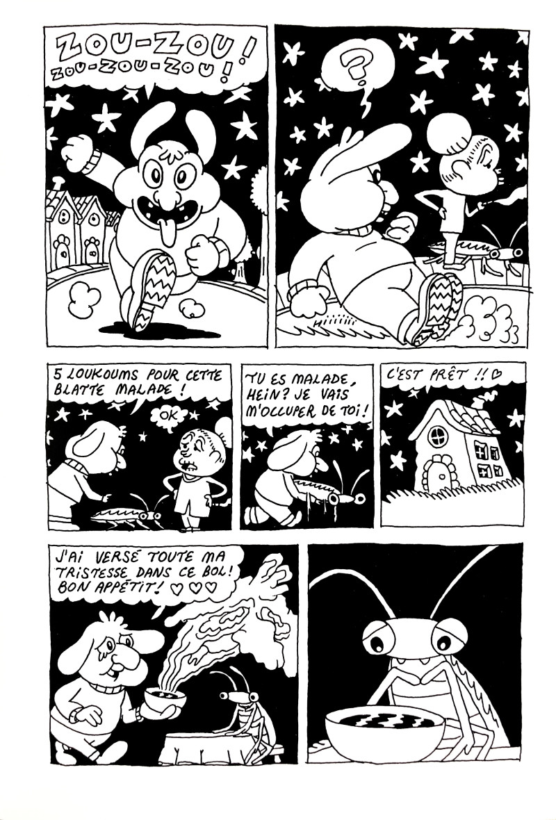 Les histoires courtes et saynètes présentées dans Anti Reflux forment un univers fantasmagorique et mignon, d'où émerge peu à peu une réalité crue. À travers une série d'histoires courtes articulées autour d'un récit principal, David Amram convoque l'imagerie des cartoons des années 1930 pour nous entraîner dans son monde candide et angoissant. Tout en jouant de cette opposition entre un style naïf et des sujets oppressants, son travail évoque l'esthétique de Placid et Muzo ou de Jim Woodring agrémenté d'une bonne dose d'absurdité. Son trait, affirmé et énergique, procure un rythme dynamique à l'ensemble et accentue le rapprochement avec les dessins animés du début du XXe siècle.