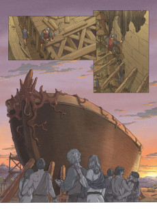 Mésopotamie. En pleine nuit, Noé reçoit la révélation divine : pour châtier les hommes, devenus corrompus et violents, le Seigneur va bientôt inonder les terres. Des pluies diluviennes s'abattront ! Pour le salut de l'Humanité, Noé va se lancer dans la construction d'une grande arche en bois de cyprès pouvant accueillir femmes, enfants et bétail. Après le déluge, au milieu des flots, la patience sauvera les hommes et la terre promise apparaîtra à l'horizon. Mais l'arrogance et l'orgueil les perdra... La collection "La Sagesse des mythes, contes et légendes" nous propose de redécouvrir un épisode biblique majeur : le mythe du déluge. C'est aussi la thématique de l'amour que l'on revisite à travers le couple fondateur que forment Noé et son épouse Emzara dans cet album soigné toujours supervisé par Luc Ferry.