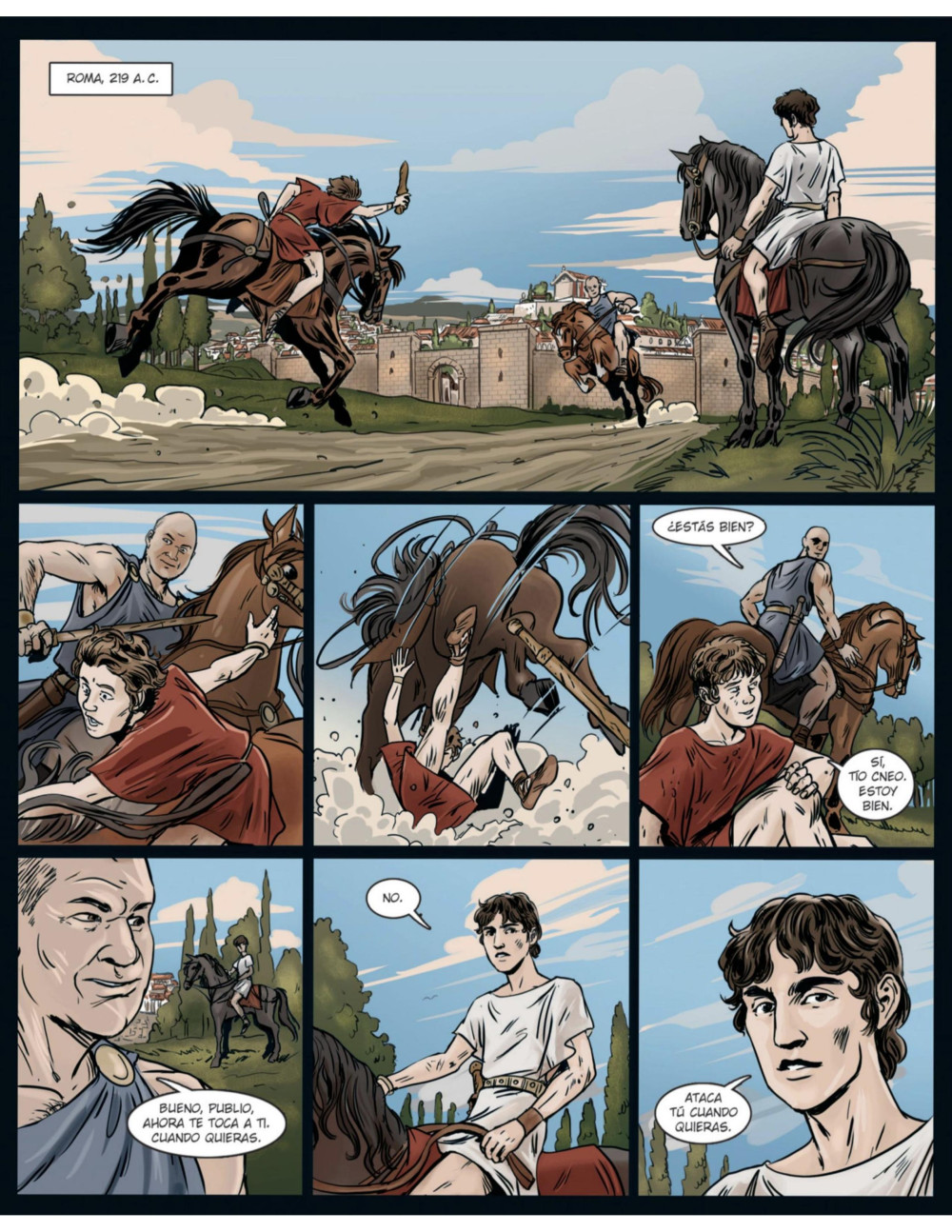 La obra maestra de la novela histórica A finales del siglo III a. C. , Roma se encontraba al borde de la destrucción total, a punto de ser aniquilada por los ejércitos cartagineses al mando de uno de los mejores estrategas militares de todos los tiempos: Aníbal. Su alianza con Filipo V de Macedonia, que pretendía la aniquilación de Roma como Estado y el reparto del mundo conocido entre las potencias de Cartago y Macedonia, constituía una fuerza imparable que, de haber conseguido sus objetivos, habría determinado para siempre el devenir de Occidente. Pero el azar y la fortuna intervinieron para que las cosas fueran de otro modo. Pocos años antes del estallido del más cruento conflicto bélico que se hubiera vivido en Roma, nació un niño que estaba destinado a cambiar el curso de la Historia: Publio Cornelio Escipión, a quien se conocerá como Africanus. Basada en la novela homónima de Santiago Posteguillo, Iván García y Daniel Domínguez -a cargo de la ilustración y de la adaptación del guion, respectivamente- reelaboran en estas páginas la aventura de infancia y juventud de uno de los personajes más influyentes de la Historia.