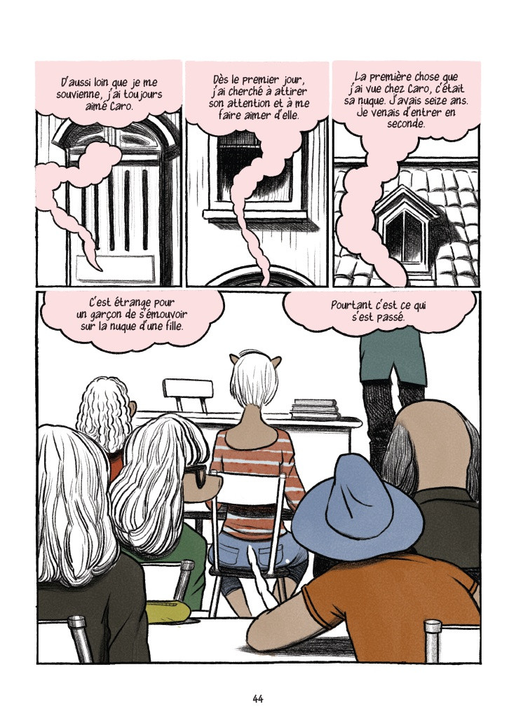 Le récit est construit dans deux époques, la première contemporaine en monochrome nous raconte le retour du personnage principal dans la ville natale, pour l’enterrement de son père, et la deuxième en couleurs qui relate les années de jeunesse d’Olivier, sa rencontre et son amour contrarié avec Caroline..