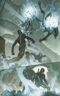 Ce qui peut apparaître de prime abord comme un simple crossover commercial entre deux franchises hyper populaires devient dès les premières pages l'œuvre d'un duo d'auteurs au sommet. L'ambiance est crépusculaire, les références à la mythologie Alien sont nombreuses et parfaitement intégrées, et l'intrigue de science-fiction horrifique se déploie à chaque page. Un one-shot qui fera date à n'en pas douter.